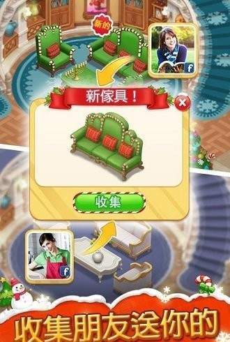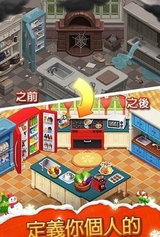 磨练你的室内设计技巧,同时保卫你的新房子,以免被满怀恶意的表兄夺走。游戏将三消玩法与庄园经营深度结合,玩家每完成一个消除关卡即可获得对应家具奖励。