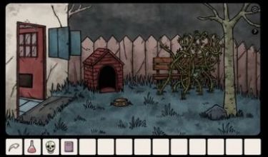 4、在后院拿走树根处的铁铲,然后到车库用其打开架子上的颜料罐拿到钥匙。
