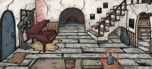 6、来到楼梯处,结合卡丽莎时间和笔记本里的提示找到对应顺序(影院、气球、餐厅、海边)的四个符号,用它们可以打开巴斯蒂安视角下的楼梯间拿到玩偶。
