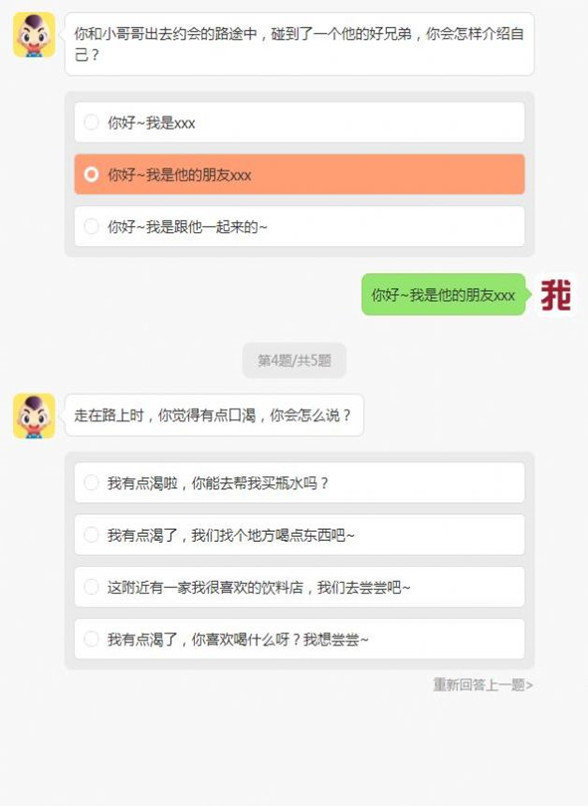 这哪是测试游戏?分明是当代年轻人的恋爱生存指南!测完才发现自己曾经踩过那么多坑,现在看谁都是"行走的茶艺教科书"。温馨提示:测试结果请勿轻易告诉伴侣,否则可能引发"你是不是在暗示我"的灵魂拷问哦~