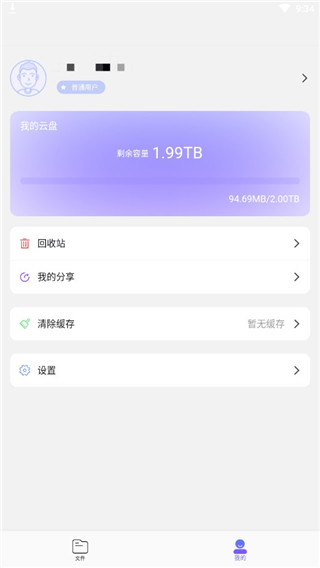 5、点击我的,可以查看剩余容量,回收站,分享历史等,更有"空间清理"神器